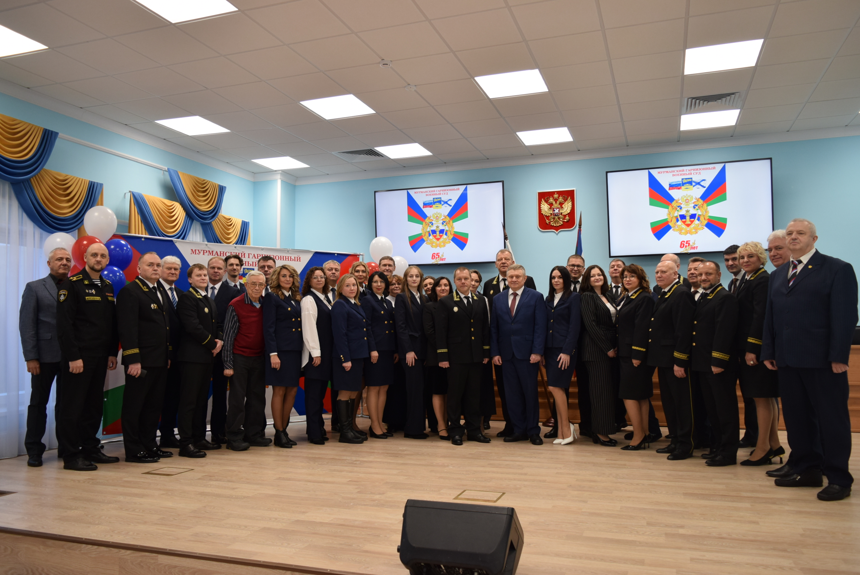 14 ноября 2025 года в расположении Мурманского областного суда состоялось торжественное мероприятия, посвященное 65 - летию со дня образования Мурманского гарнизонного военного суда. Гостями праздника стали председатель Северного флотского военного суда Басов А.И., Главный Федеральный инспектор по Мурманской области аппарата полномочного представителя Президента Российской Федерации в Северо-Западном федеральном округе Калинин А.Н., председатель Мурманского областного суда Седых С.М., председатель Совета судей Мурманской области Маляр А.А., председатель Квалификационной коллегии судей Мурманской области Тихонова Ж.В., председатель экзаменационной комиссии Устинович С.Е., начальник Управления Судебного департамента в Мурманской области при Верховном Суде Российской Федерации Стрижак А.И., председатели военных судов, судьи пребывающие в почётной отставке, руководитель военного следственного Управления по Северному флоту полковник юстиции Вишневский О.И., командиры воинских частей Алексеев Е.В. и Волков Д.С. Председатель Мурманского гарнизонного военного суда Титаренко Владимир Васильевич выступил с приветственным словом. Все приглашенные гости обратились с поздравительными словами и добрыми пожеланиями к коллективу Мурманского гарнизонного военного суда. На юбилейном торжестве состоялось награждение судей и работников аппарата суда ведомственными наградами, знаками отличия Судебного департамента при Верховном Суде Российской Федерации, почетными грамотами и благодарностями. Торжественное мероприятия сопровождалось концертными номерами и песнями военного оркестра 701 Центра материально-технического обеспечения Северного флота, а также ансамбля «Песни и Пляски Краснознаменного Ордена Ушакова Северного флота». |