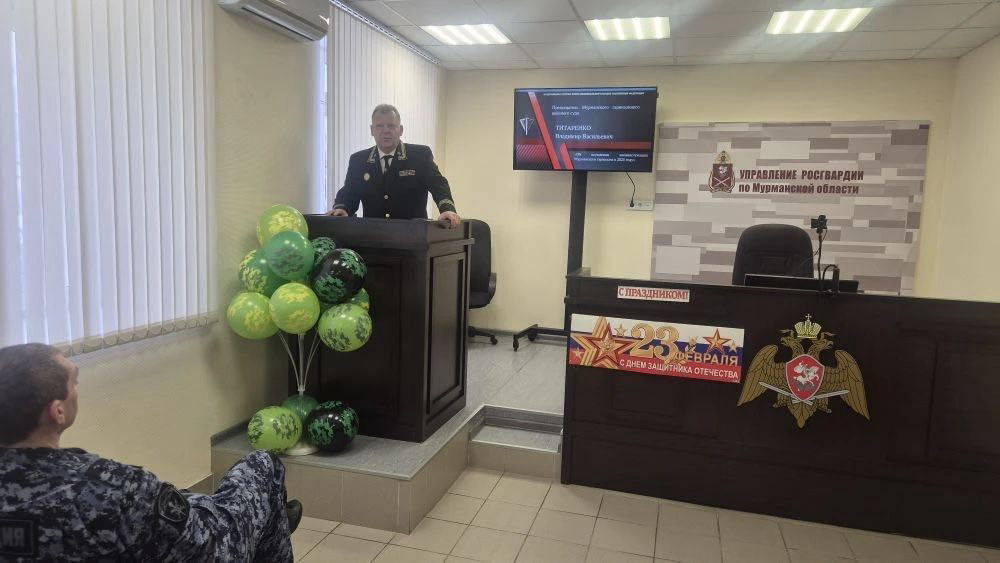 20 февраля 2026 года председатель Мурманского гарнизонного военного суда Титаренко Владимир Васильевич провел методическое занятие с личным составом Управления Росгвардии по Мурманской области на тему: «Об осуждении военнослужащих Мурманского гарнизона в 2025 году. Практика назначения наказаний за воинские преступления».